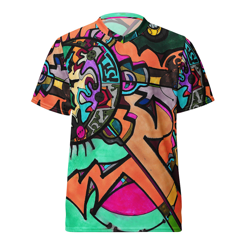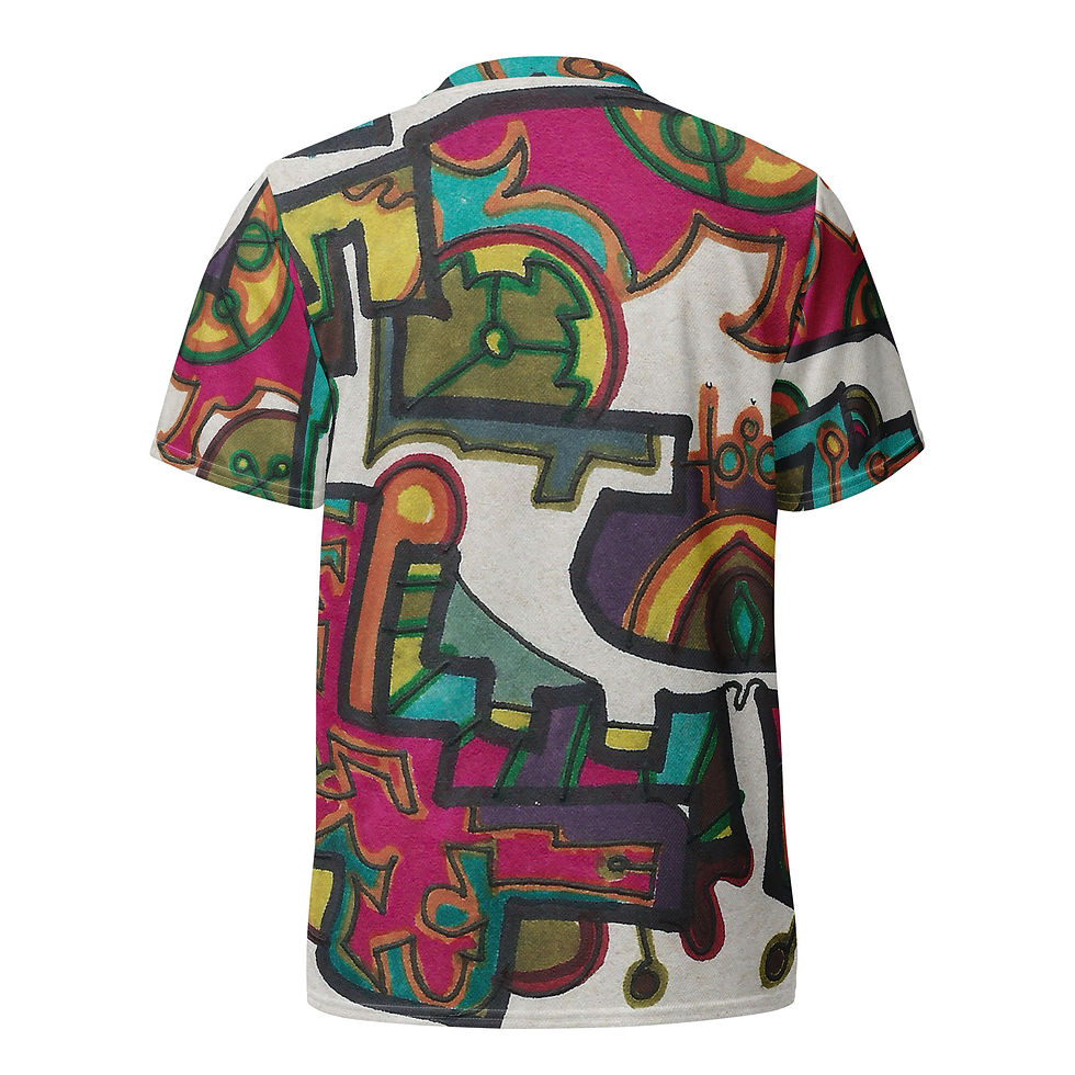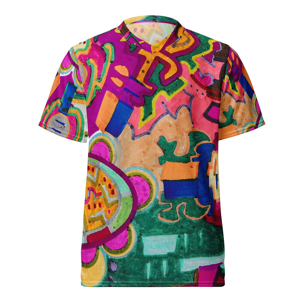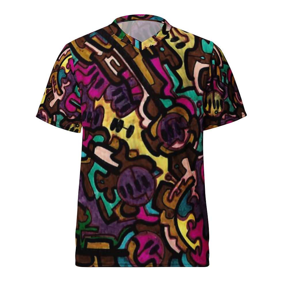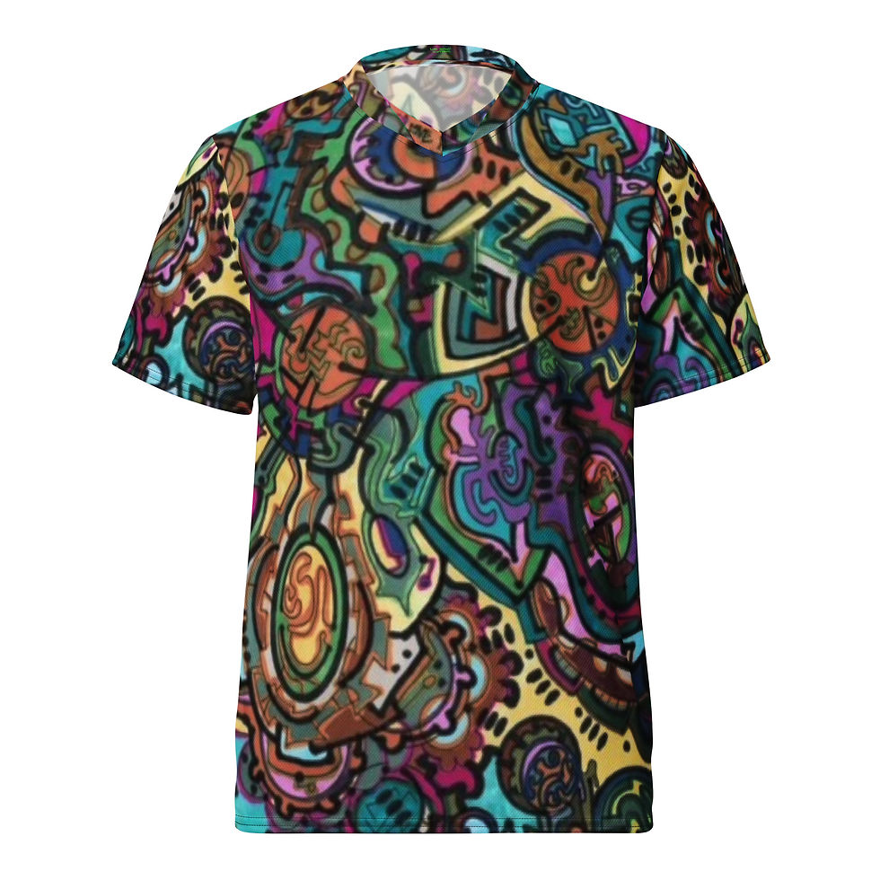 OUR DESIGNS STAND OUT AND BECAUSE THERE ARE SO MANY YOU WILL ALMOST CERTAINLY BE ONE OF A KIND, THE ALL OVER PRINTS ARE SYNTHETIC AND THE ONES WITH SYMBOLS ON CHEST AND ARMS ARE COTTON, THEY ARE LOVELY AND ARE ORIGINAL, PERFECT FOR THE DANCE FLOOR EVERY KIND OF MUSIC.